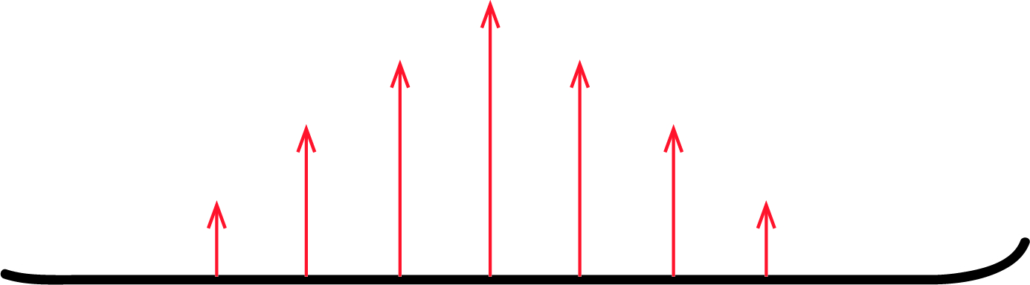 Bild till vänster: Normalkraftens påverkan på skidan. Bild till höger: Normalkraftens resultant.