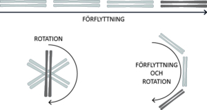 Beroende på var kraften träffar föremålet kommer en förflyttning, en rotation eller båda två att ske samtidigt.